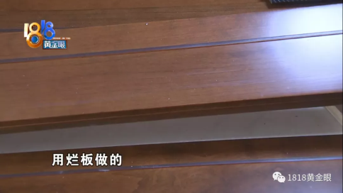 陳老師:“這個(gè)門送過來,發(fā)掘問題了,就這個(gè)門整個(gè)開裂的,門上面裂開以下裂開,都有問題的,門的邊框板油漆整個(gè)起泡的,護(hù)墻就是爛的,用爛板做的,(原本)理應(yīng)是高質(zhì)木門高質(zhì)材質(zhì) 。”